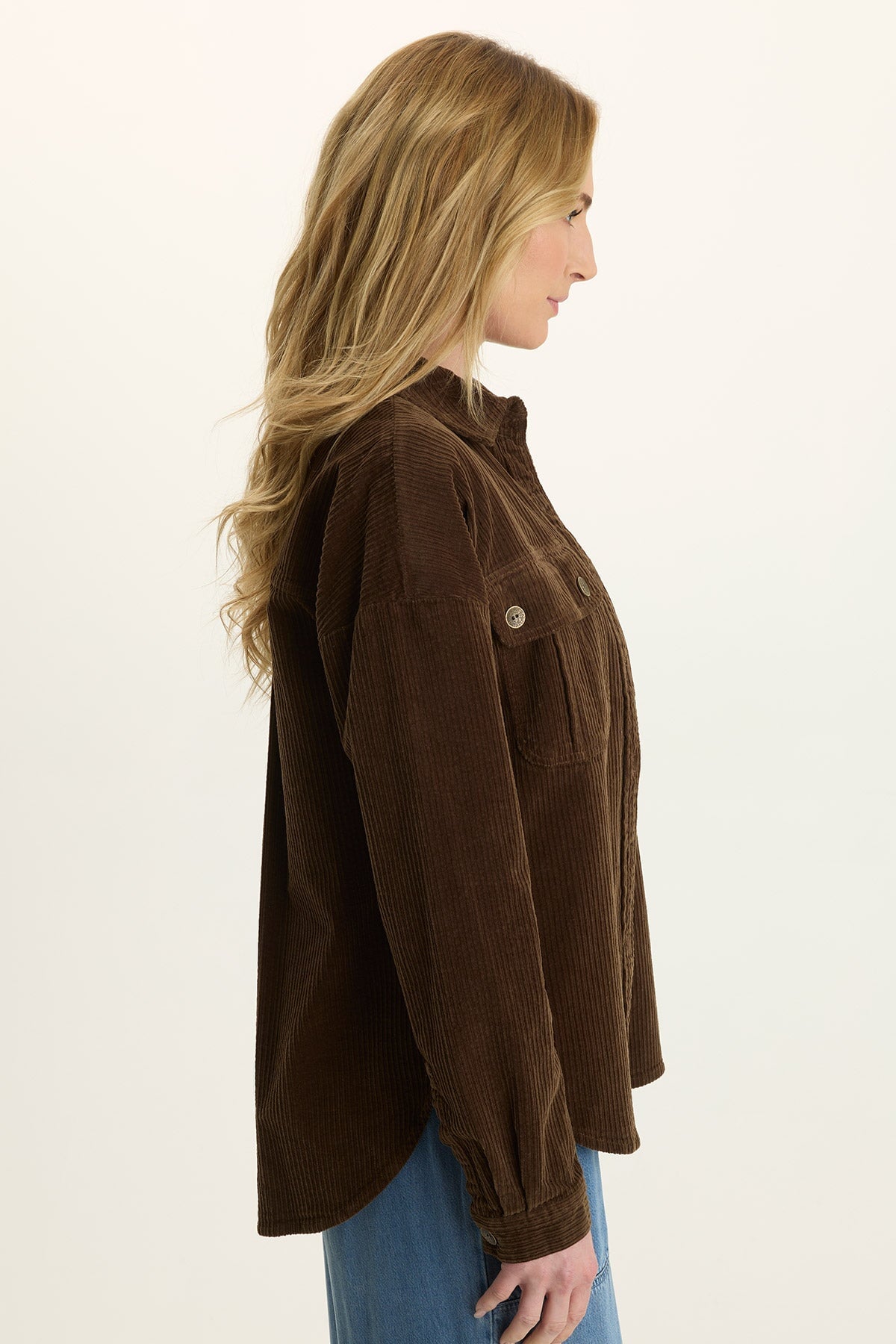 A slightly oversized fit makes Smithson the perfect layering piece in comfy corduroy. Roomy breast pockets add functional details, while antique brass buttons complete the look with a rustic touch.